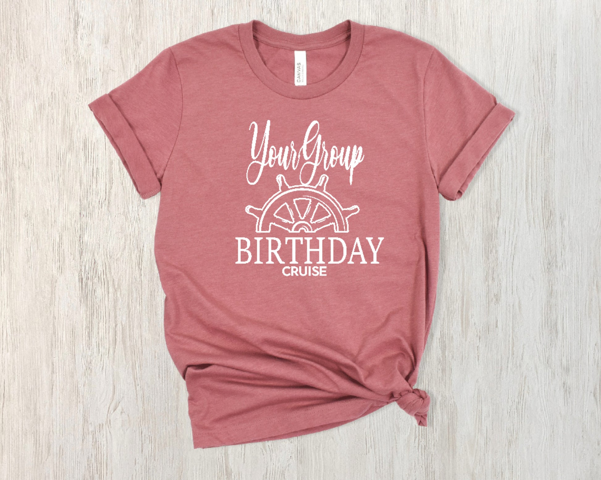 What's a better way to celebrate a birthday than on a ship? Add your group's name to this nautical themed shirt. Set sail in style! Customize your group's birthday cruise with this one-of-a-kind sail-worthy shirt.